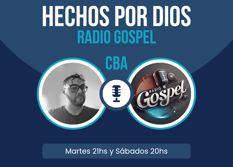 Te invitamos a sintonizar “Hechos por Dios”, un programa lleno de fe, testimonios y contenido que transforma vidas. Con la conducción de Pablo Kupec, acompáñanos todos los Sábados a las 20:00 hs, siempre a través de www.radiogospelcba.com.